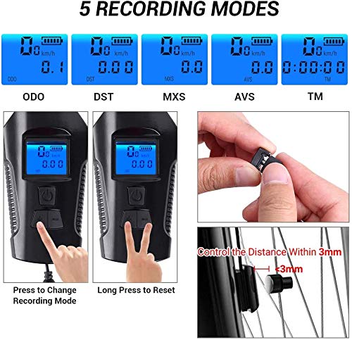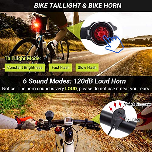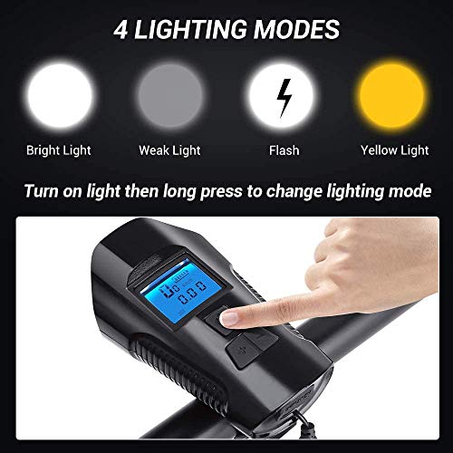 【LCD Monitor & Bike Bell】– The bike headlight with bike speedometer odometer is used to record speed. distance and riding time. 5 modes to switch–ODO. DST. MXS. AVS. TM. Comes with a bike horn with 6 sound modes to choose. it can emit a warning sound up to 120 dB.