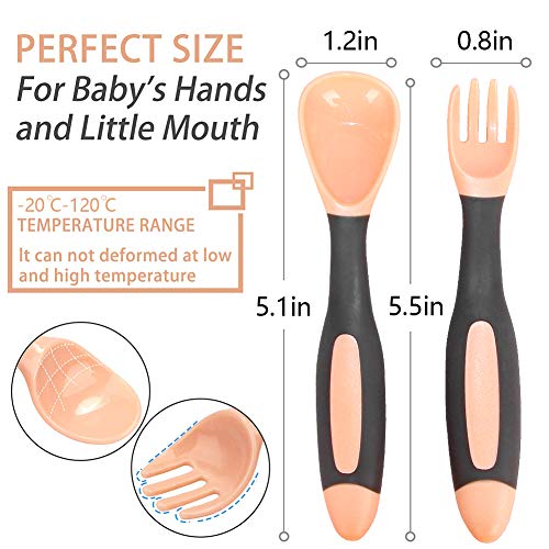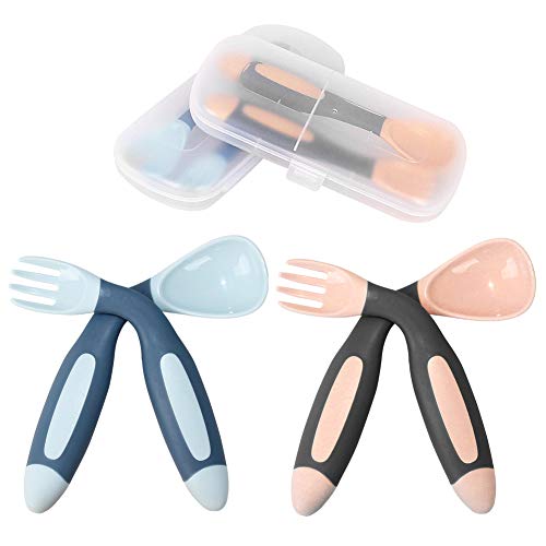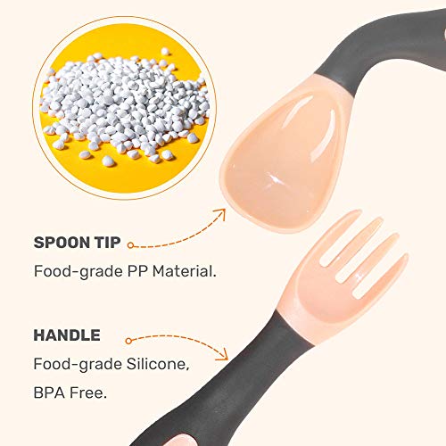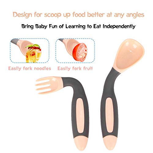 🍼PERFECT SELF-FEEDING FUNCTION: The silicone handle can be bent in any direction so that it allows babies to eat at various angles. increasing hand-eye coordination.