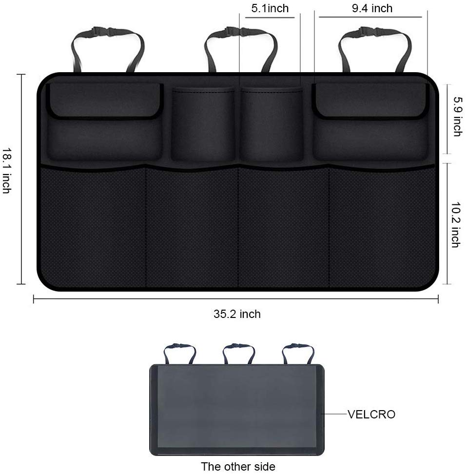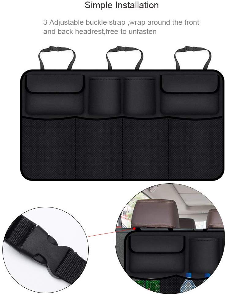 Premium Material & Anti-scratch: This car backseat storage organizer is made from heavy-duty 600D polyester material. which durable. waterproof. washable. easy to clean and long-lasting abrasion resistance.