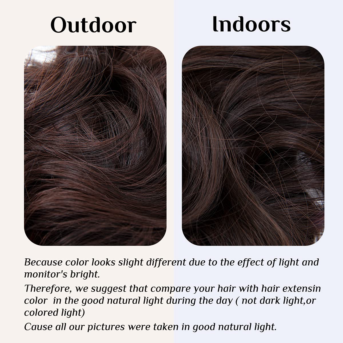 ✔ MATCHING COLOURS: We suggest choosing color through your own hair root or based on your hair color under outdoor natural light during the day. (There may be color differences due to different colors shown on different monitors) If you have difficulty in choosing. please feel free to contact us. we will help you make the right choice.