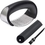 ✔ EASY TO CLEAN: Simply rinse under running water or run through the dishwasher. Garlic is collected on the surface of the rocking garlic press and is super easy to clean! Its compact size makes it very portable and easy to store too!