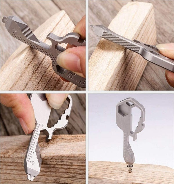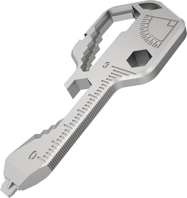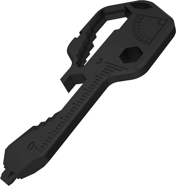 ✔ 24 in 1 MULTI-TOOL: GoKey™ has over 20+ versatile universal functions. It includes a Smoking Pipe. 3.2/3.3mm Bike Spoke Key. a Screwdriver tip that will fit a #2/3 Slotted. #2 Square Drive. #2/3 Phillips. Imperial and Metric Closed Wrench.  Open Wrench. Bit Driver. Scoring Tip. Serrated Edge. Can Opener. Wire Stripper. File. Imperial. and Metric Ruler. Protractor. Bottle Opener. Multi-head fit Driver. and a Lanyard Hole.