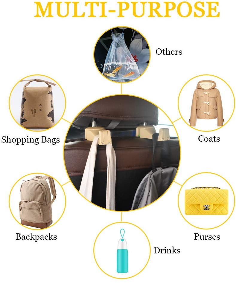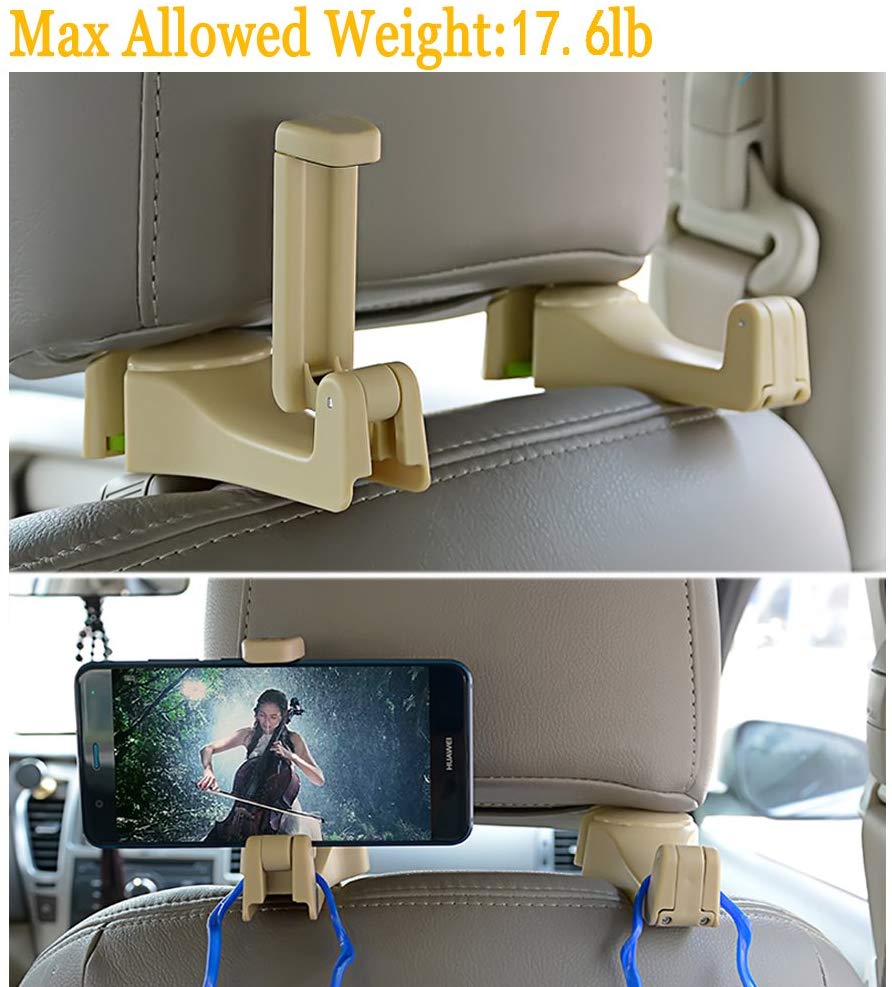 Multifunction and Space Saving: Our universal vehicle car headrest can be used as a car phone holder. and great for hanging variety of bags. purses. groceries. clothes.etc. Max allowed weight: 17.6 lb.
