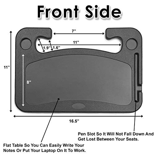 ✓ Our Multipurpose Car Steering Wheel Table Organizer is sturdy enough to support a tablet. notebook and even a laptop or a full lunch with drinks. The Tray Is Measuring 16.5” x 11” x 1”. It’s Made to A Very High Standard. Which Gives This Tray A Good Look And A Super Long Life.