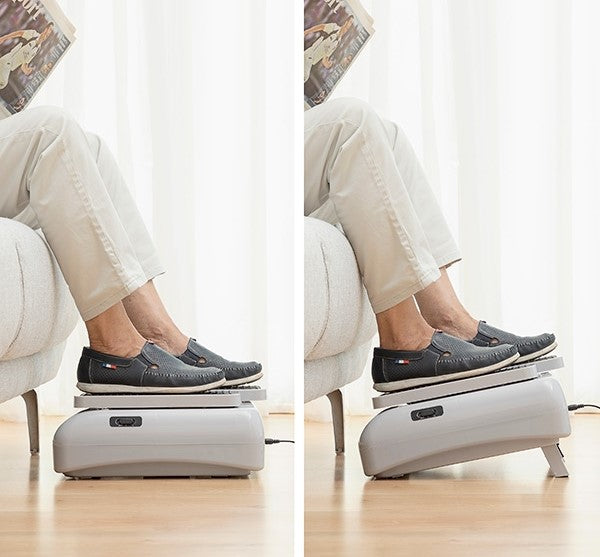 An electric leg exerciser is perfect for combatting a sedentary lifestyle by enabling you to do physical exercise passively and without effort. It enables you to make walking movements while comfortably seated and carrying out other activities such as reading. working. playing. watching tv. etc. This new passive exercise device is very easy to use and can be used at home. in the office. etc. You simply plug it in. sit down. place your feet on the pedals and select your speed and it will glide your feet forwards and back for a smooth and effective training session. Because of its features and functionality. it is especially recommended for older people or those with sedentary jobs who spend a lot of time standing up or sitting down.