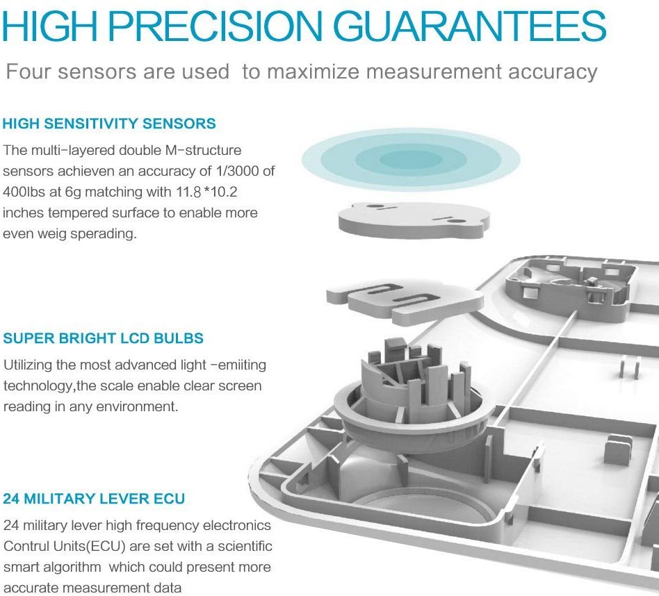HIGH ACCURACY WITHIN 0.2 lb/0.1 kg – built with 4 advanced high-precision sensors to work together for the most accurate weight measurements.