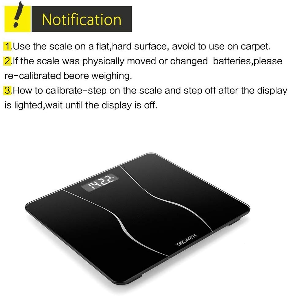 SMART STEP-ON TECHNOLOGY – Instant accurate readout as soon as you step on the scale. Non-slip feet will not scratch floors. up to 400lbs/180kg. 3-unit modes (kg. lb. st:lb).