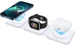 ✔ FOLDABLE DESIGN: With ease. smoothly fold it into a phone stand or lay it out flat to charge 3 devices at once. or fold it away for when it is needed. Designed with a slim interchangeable charger that is convenient for all! Inside the soft-touch silicone. holds our advanced magnetic charging technology. It can magnetically stick to iPhones with MagSafe capabilities.